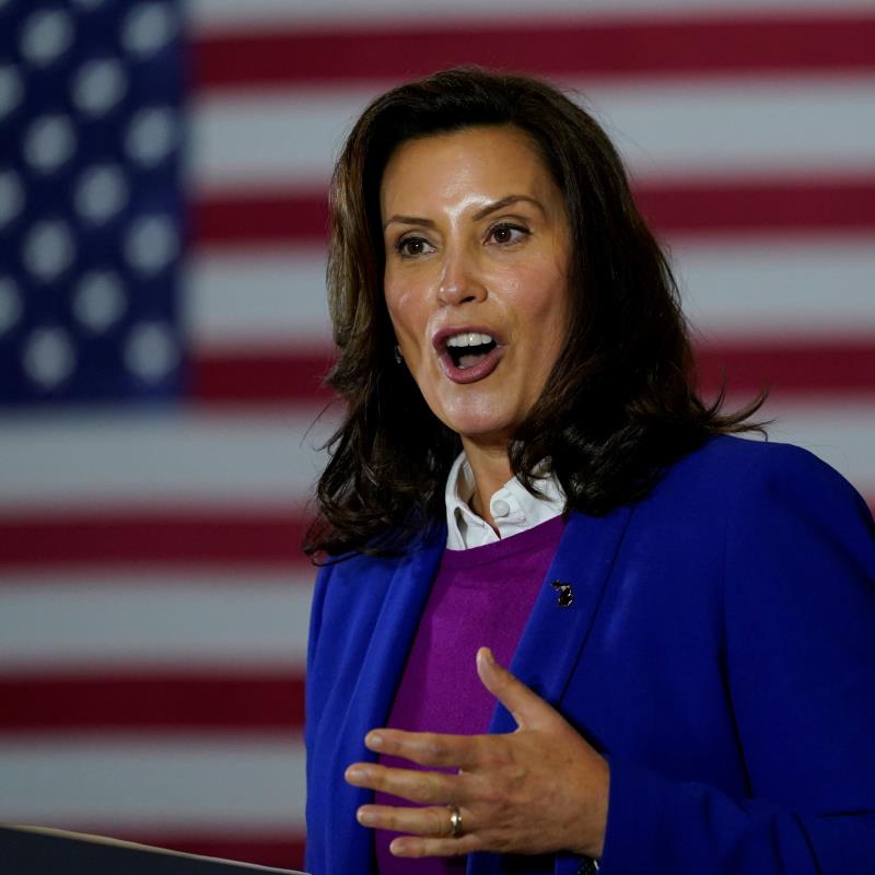 DETROIT (AP) — Michigan Gov. Gretchen Whitmer said Sunday that President Donald Trump is inciting “domestic terrorism” following “lock her...