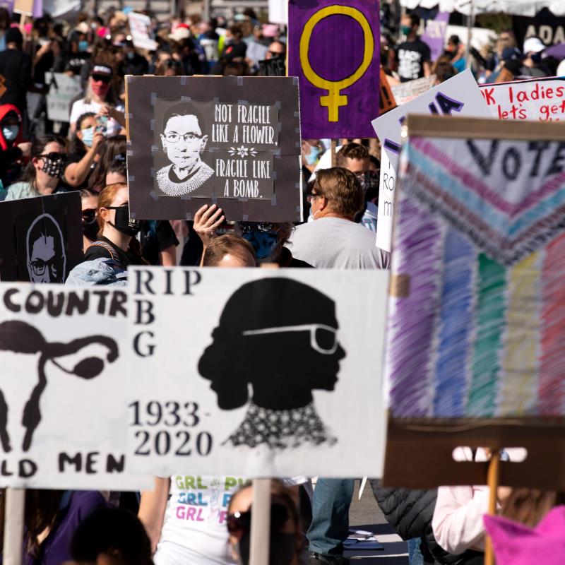 Thousands were expected to march Saturday to protest Amy Coney Barrett's nomination to the Supreme Court and galvanize voters ahead...