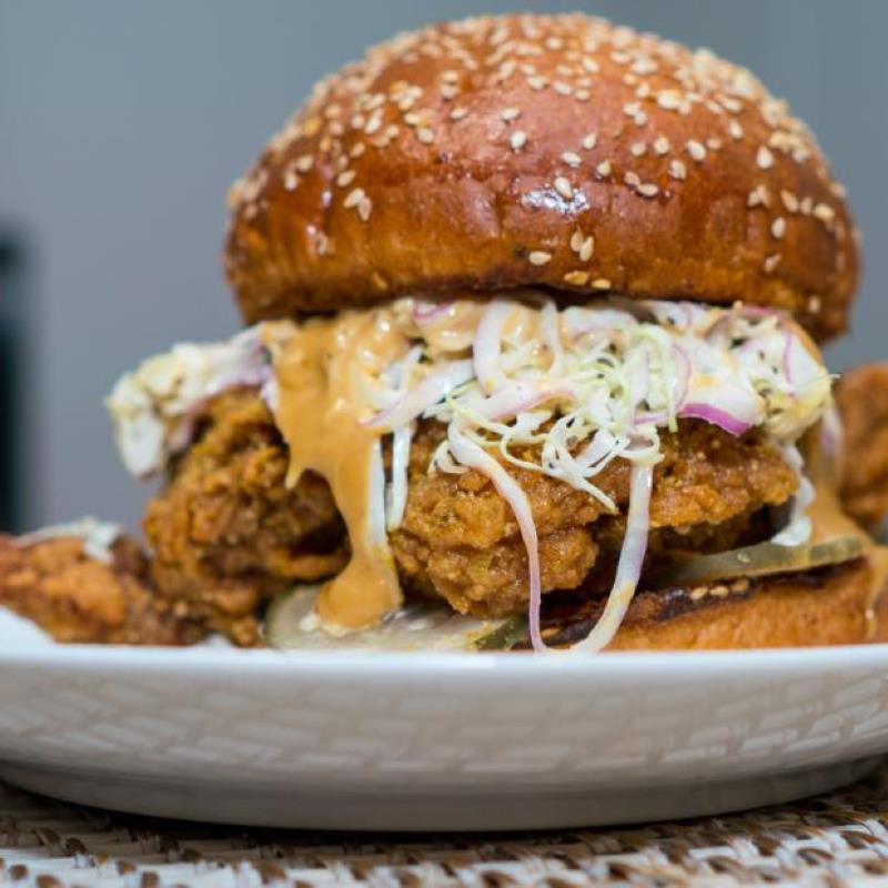 At first glance the fried chicken sandwich from Birdbox in San Francisco is the stuff of nightmares. But that jutting...