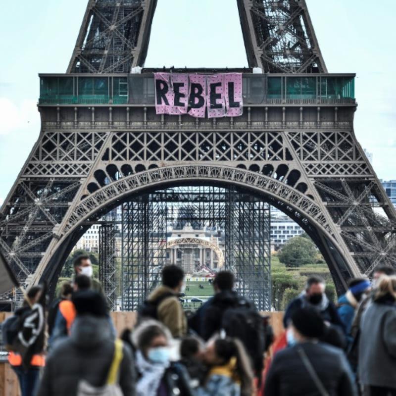 Eight activists from climate change protest group Extinction Rebellion scaled the outside of the Eiffel Tower on Sunday to hang...