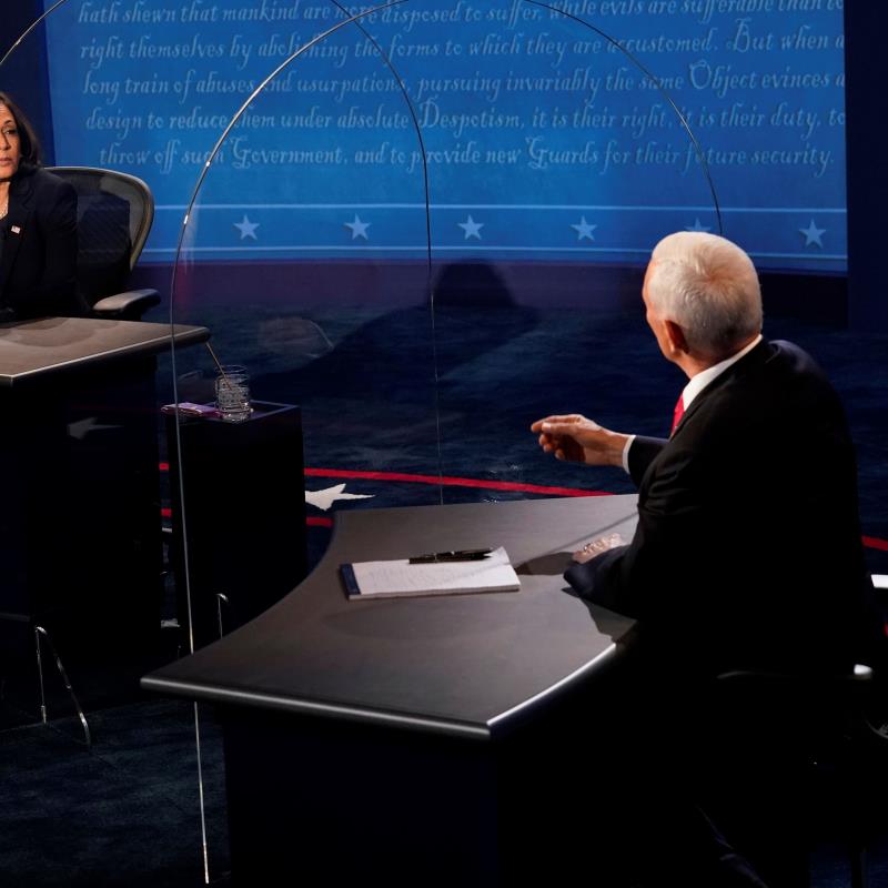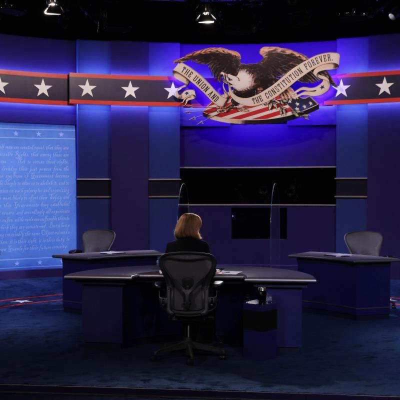 The two candidates were seated 12 feet apart and separated by sheets of plexiglass in a debate that has taken...