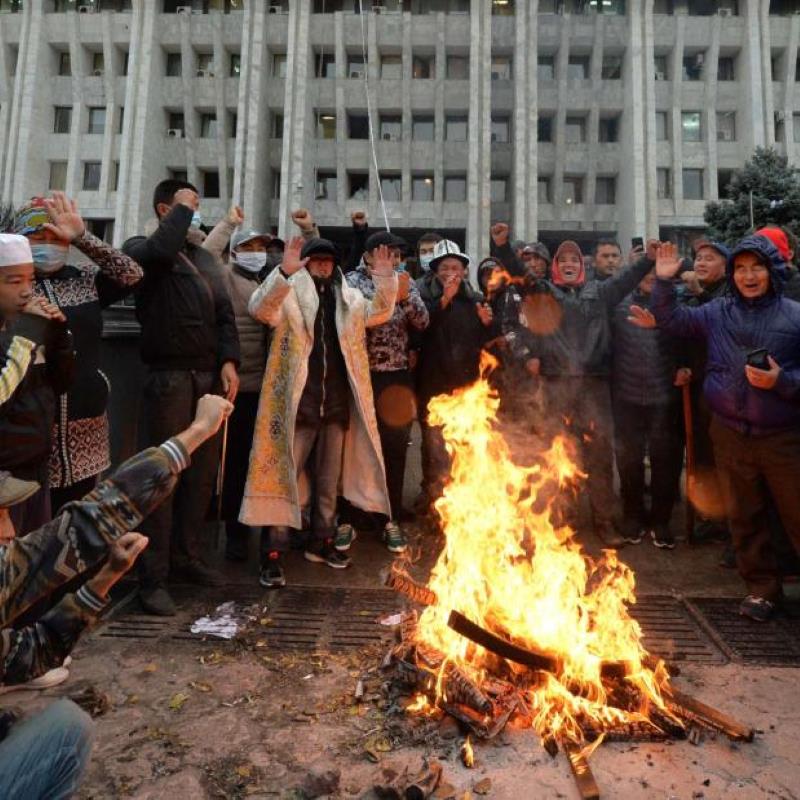 Anti-government protesters scuffled with vigilante groups in Kyrgyzstan's capital of Bishkek overnight, after authorities in the Central Asian nation annulled...