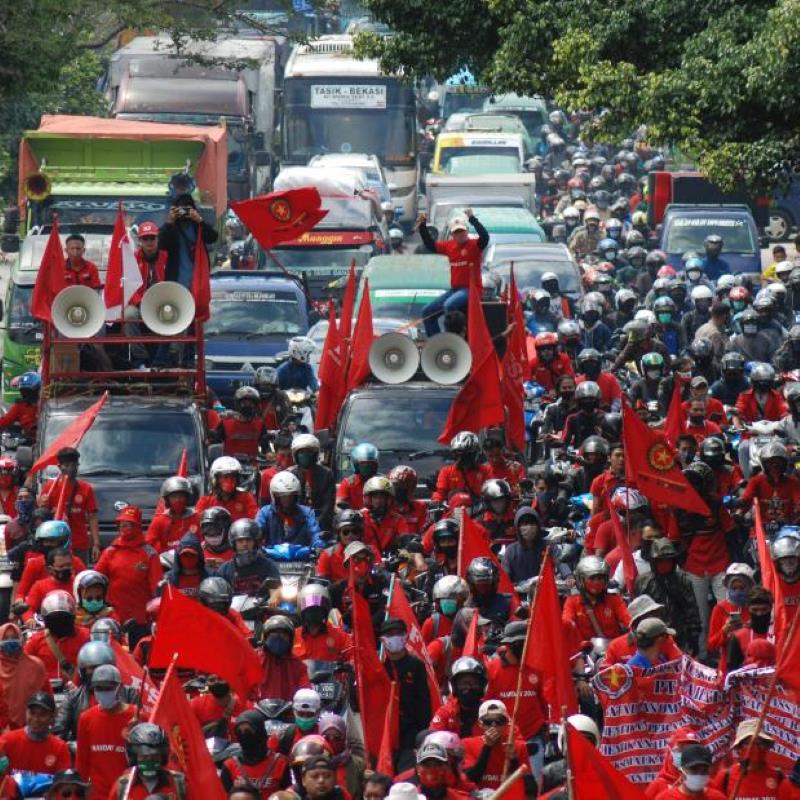 Indonesian police used water cannons and tear gas on Tuesday to disperse protesters rallying against a new jobs law in...